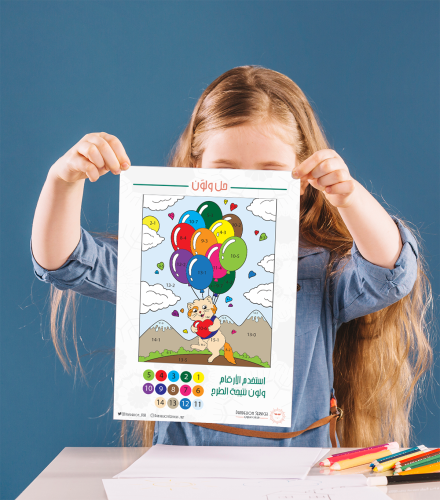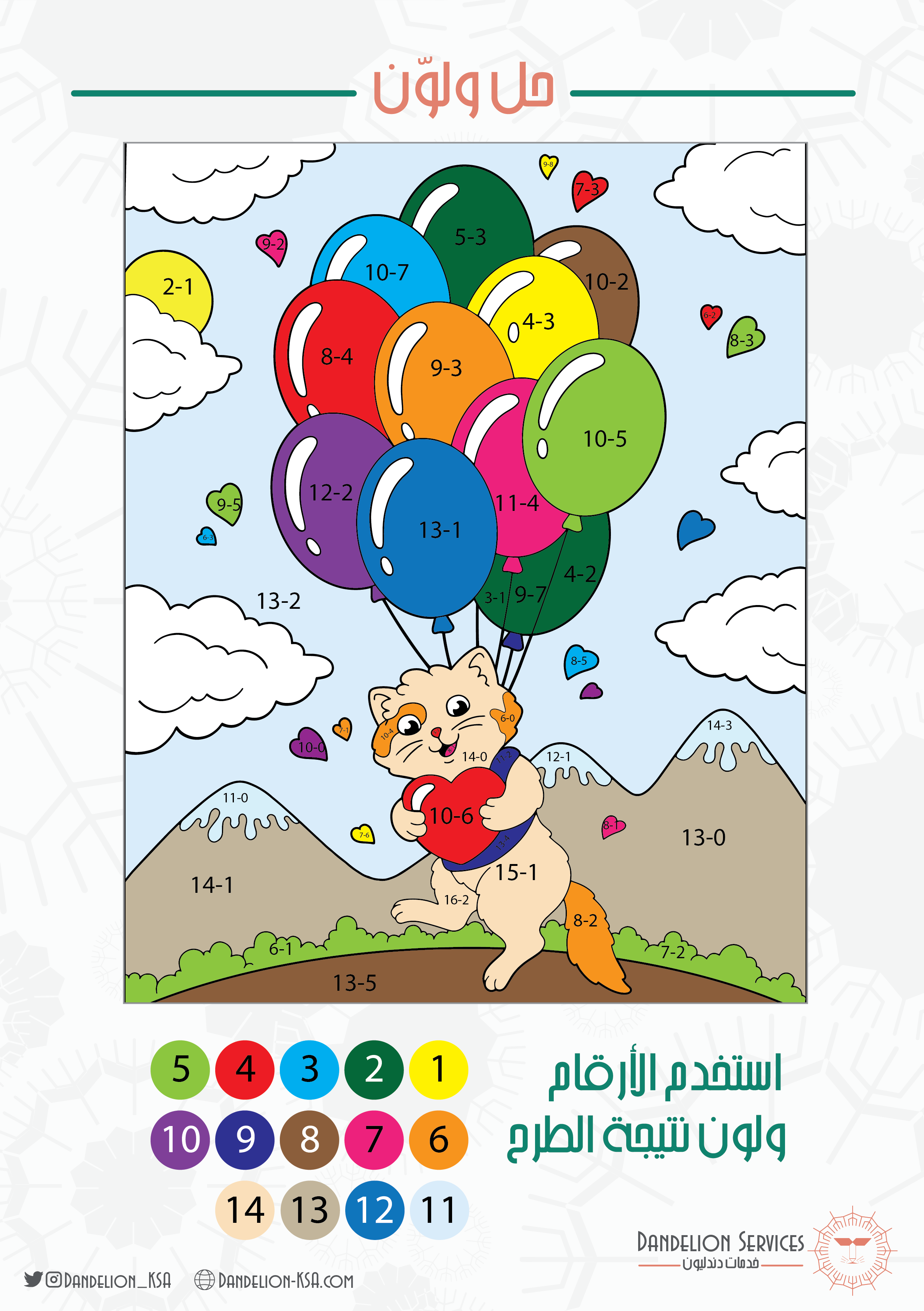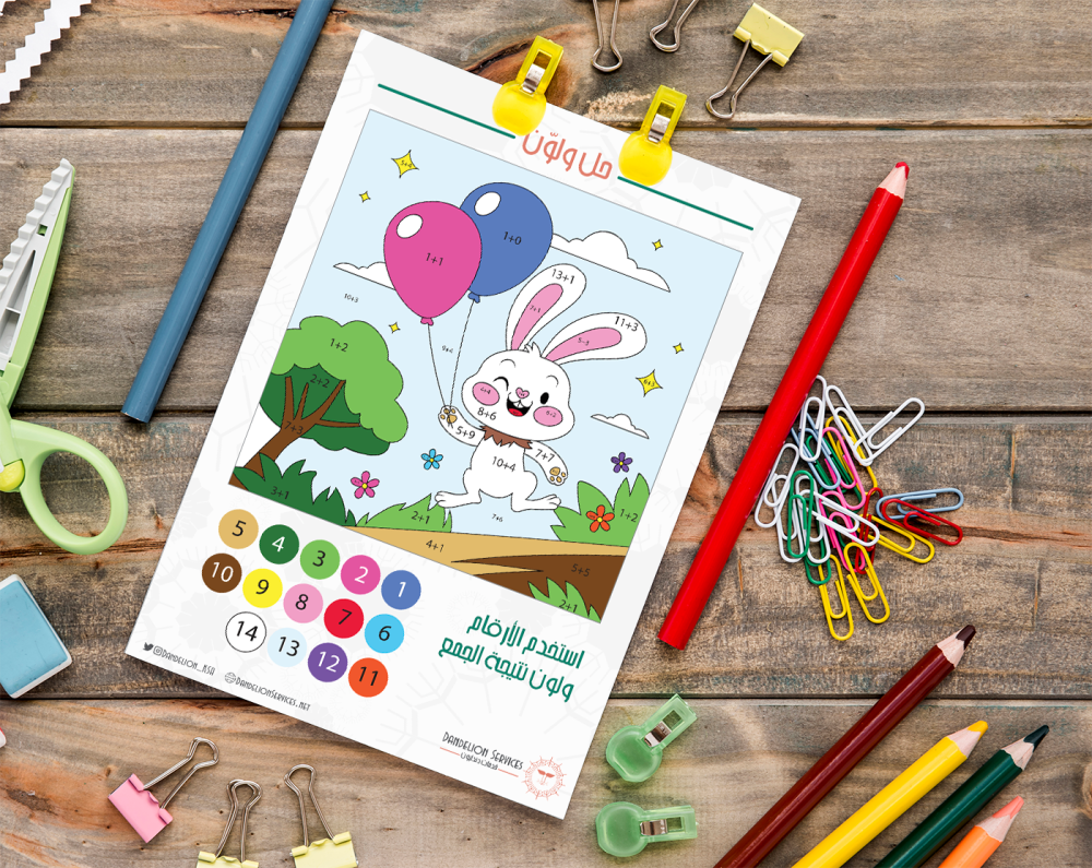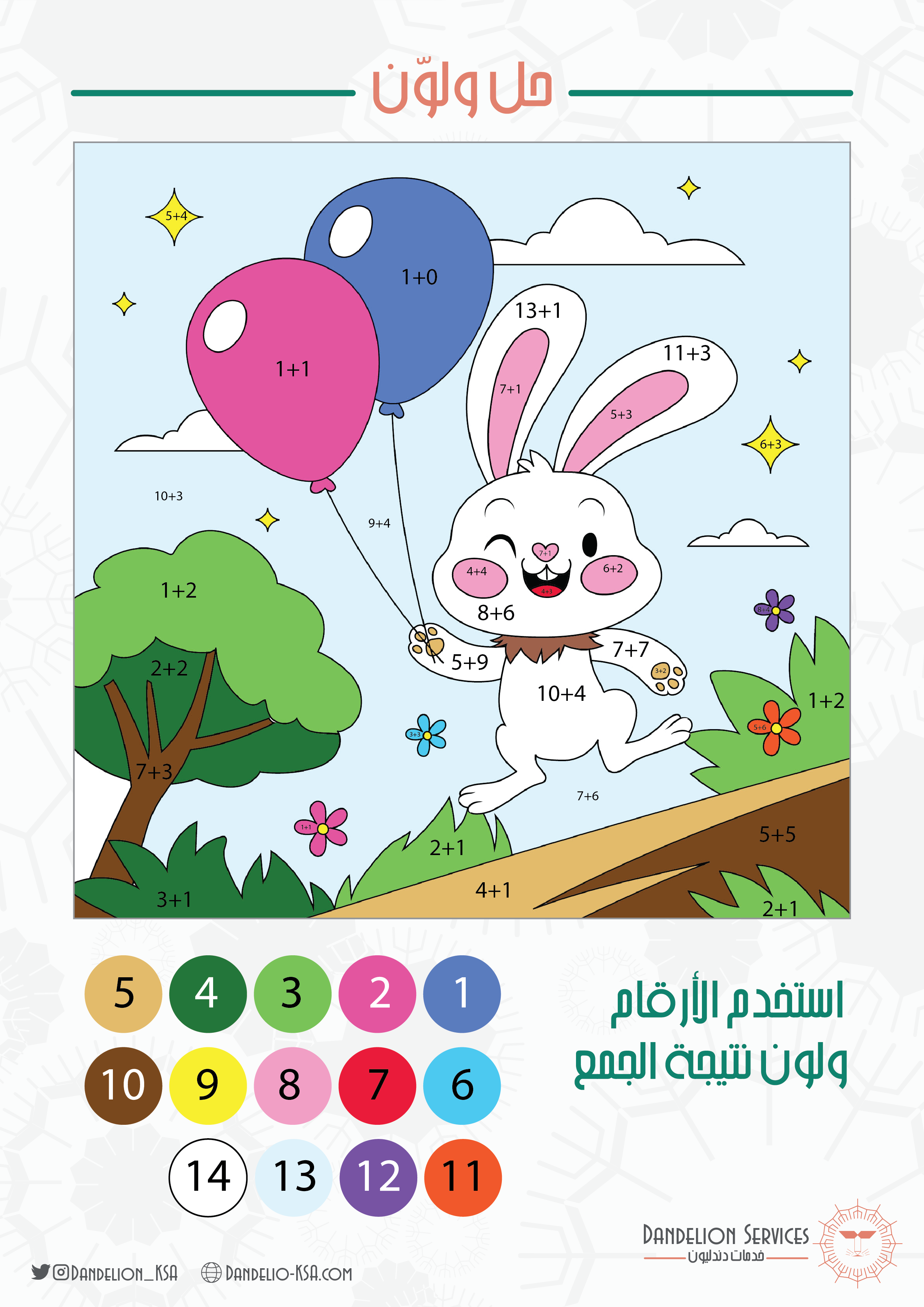 ورقتين تلوين تحتوي كل ورقة على معادلات الجمع والطرح البسيطة